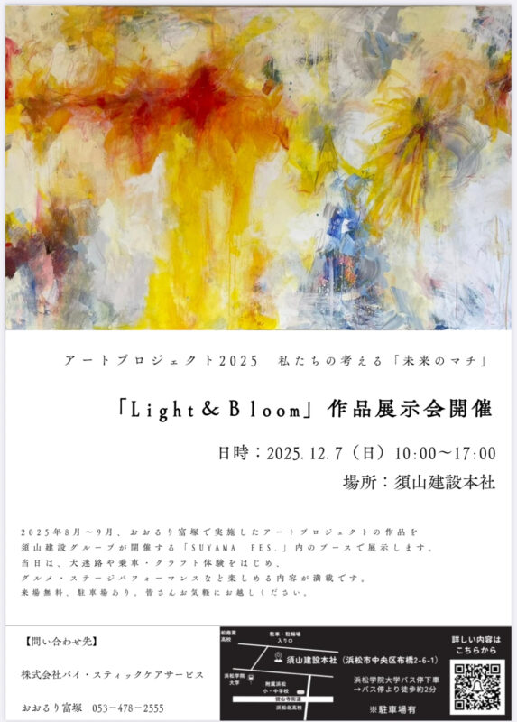 12月7日(日)須山建設で開催する「SUYAMA FES.」に、アートプロジェクトで完成した絵画の展示ブースとOHRURI COFFEEの飲食ブースを設けます。