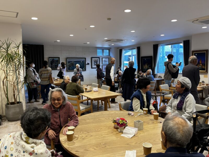一般の方が多く来られ、コーヒー片手に音楽を聴いたり、絵をみたりしていました。