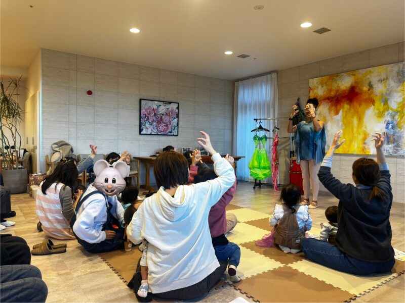 0歳から、100歳近くの方が、おおるり富塚に集まり、みんな一緒にマギダさんのダンスに合わせて