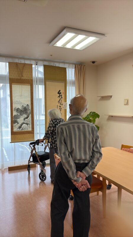入居者も普段目にかかることのない掛け軸に興味津々でした。